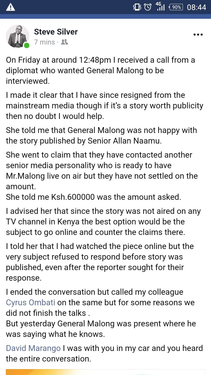 Steve says he declined the offer but wasn’t surprised to watch the request materialize when Malong was hosted on Citizen TV.