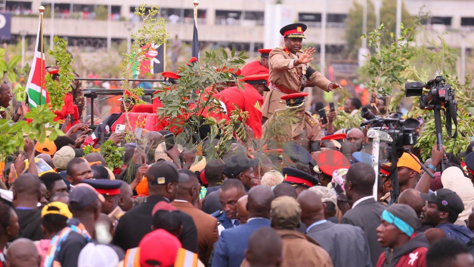 Members of the Kenya Defence Forces, police, and National Youth Service formed a tight security ring around the plane and the casket as tensions rose.