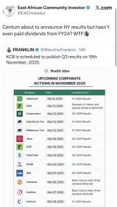Nairobi, November 6, 2025 – Centum Investment Company Plc has come under fire from some investors for proceeding with its scheduled announcement of half-year results for the financial year ending March 2026, even as the payment of dividends declared for the previous fiscal year remains outstanding.