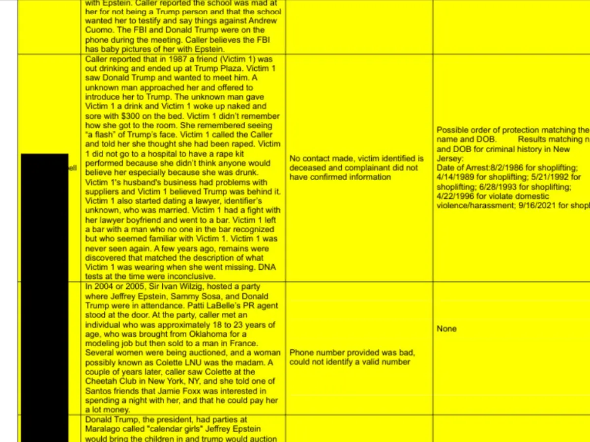 “Victim 1 didn’t remember how she got to the room. She remembered seeing ‘a flash’ of Trump’s face. Victim 1 called the Caller and told her she thought she had been raped”.