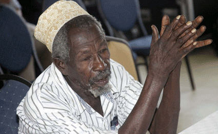 Mzee Hamisi Mwatende when appeared before the National Land Commission committee on land injustices at the Kenya School of Government in Mombasa on August 29, 2018. He is claiming ownership of 62 acres of land on Funzi Island that was transferred to an Italian tycoon, Alessandro Torriani.