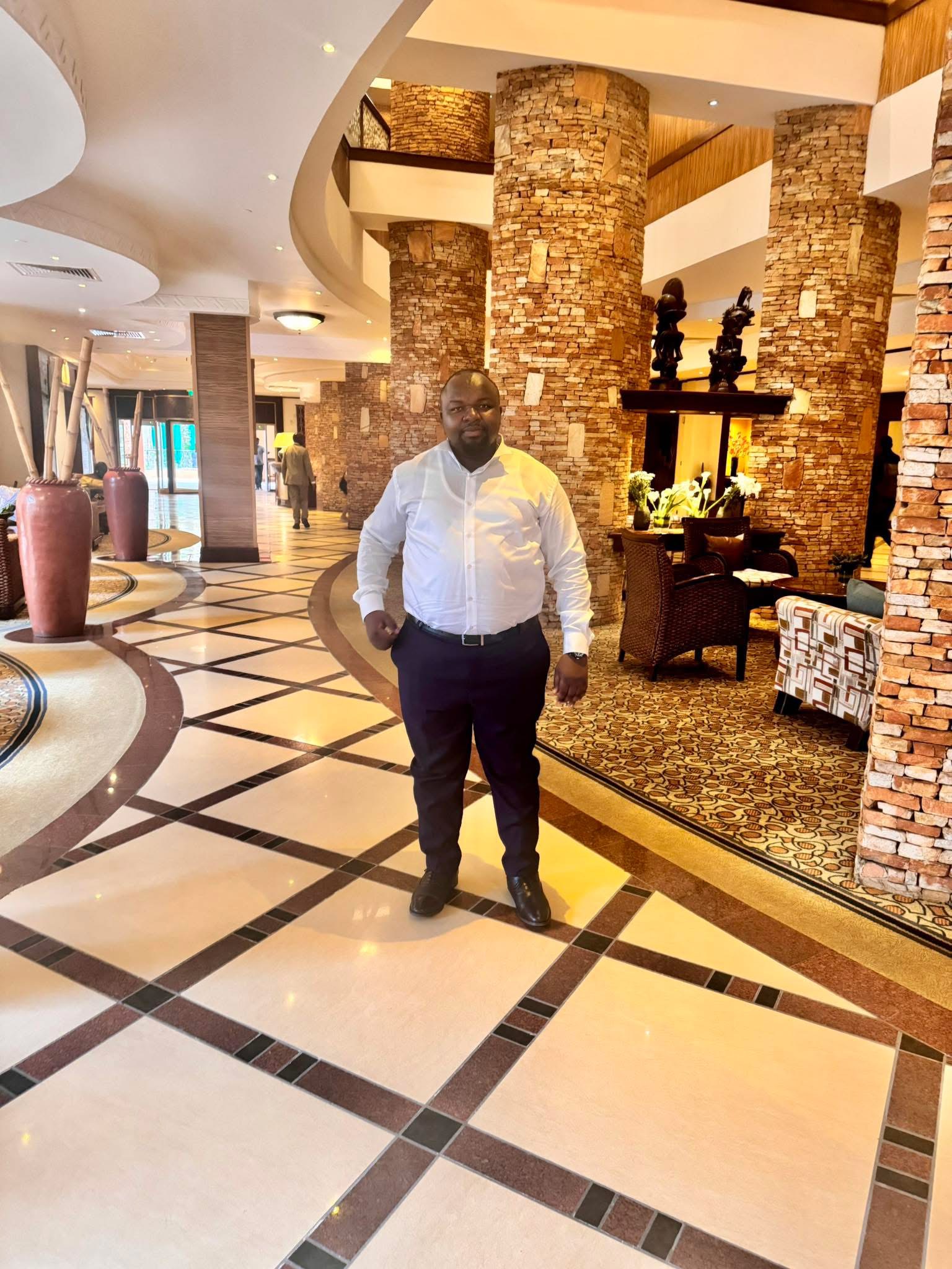 He studied at Kenyatta University and runs business interests including what appears to be a Belaire champagne distributorship.