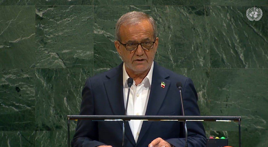 Iran's President Masoud Pezeshkian addresses the 80th United Nations General Assembly (UNGA) at the U.N. headquarters in New York, U.S., September 24, 2025.