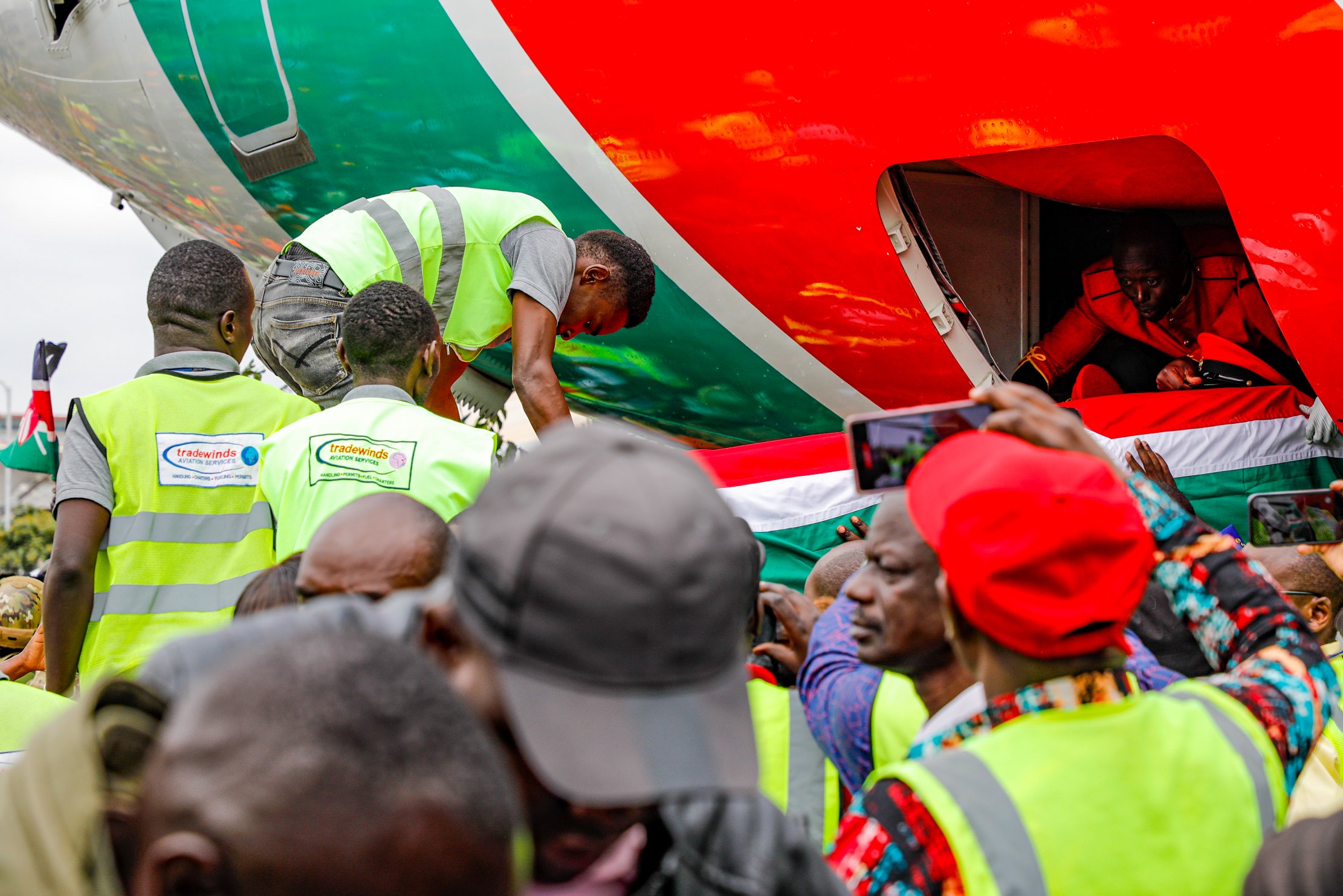 Emotions continue to run high, with thousands of his supporters thronging the JKIA to receive his remains.