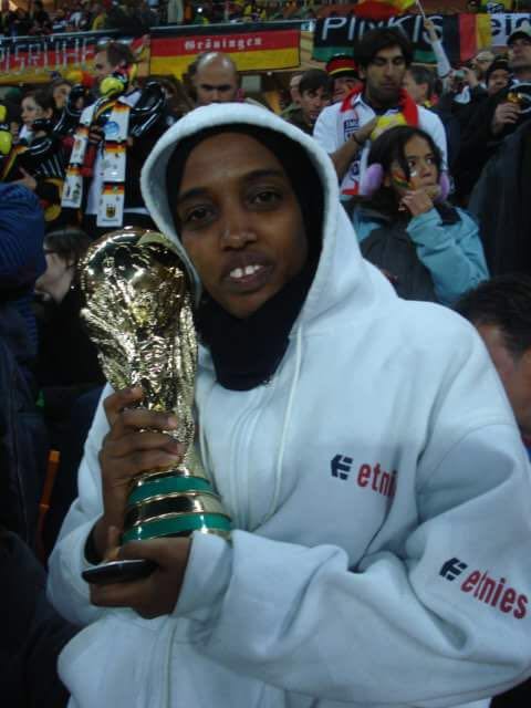 Fatuma Abdulkadir Adan, attending a match between Ghana and Germany in South Africa as a FIFA ambassador.