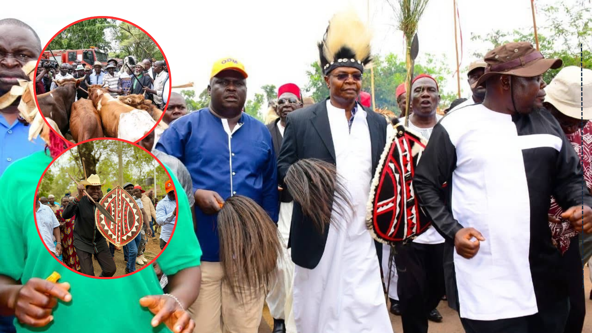 From Trans Nzoia, Governor George Natembeya led Iteso elders who brought 15 bulls. Natembeya, dressed in traditional warrior attire with a shield and spear, said the Luhya and Luo have always shared destiny and strength.