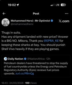Mohammed Hersi’s fury is not merely the outrage of a Twitter commentator. It is the anguish of an industry that depends on cheap, reliable fuel in ways that the petroleum boardrooms prefer not to contemplate.