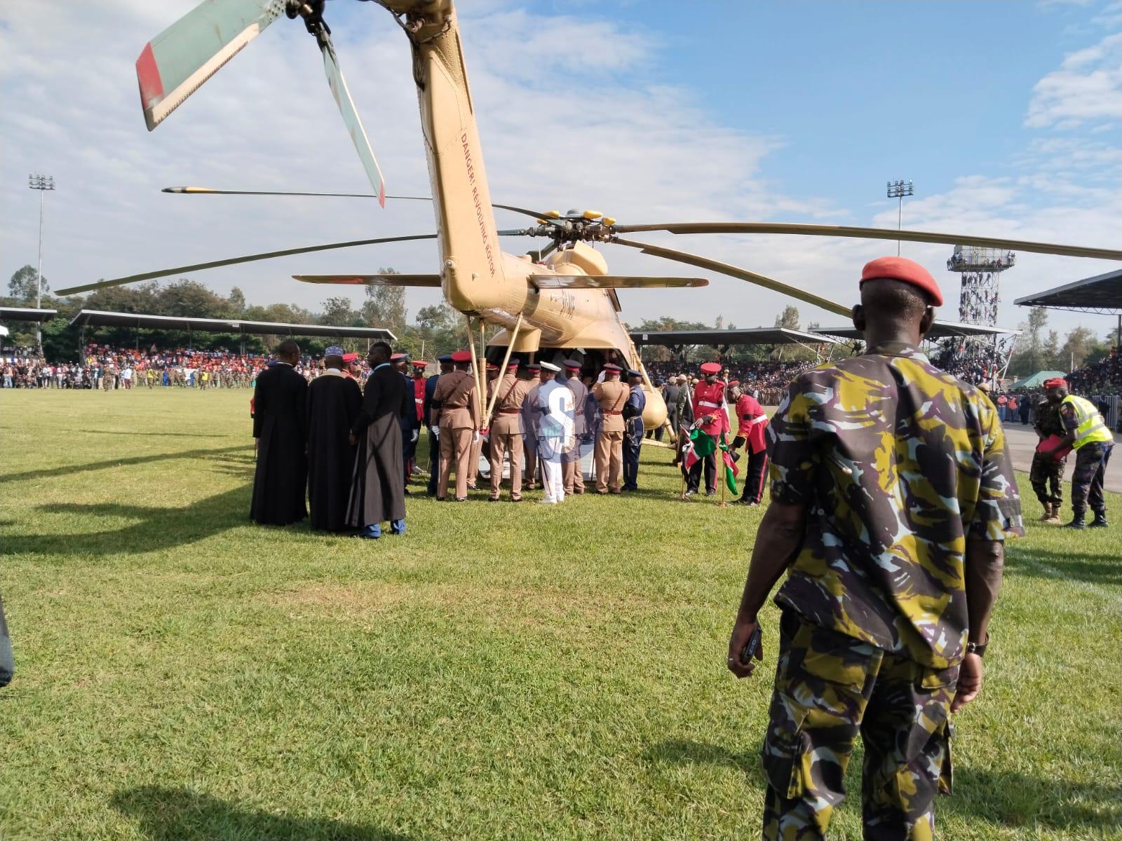 KISUMU, Kenya — The body of former Prime Minister Raila Amollo Odinga was this morning airlifted to the Jomo Kenyatta International Stadium in Mamboleo, Kisumu, aboard a National Intelligence Service (NIS) helicopter, marking a historic and emotional moment in the lakeside city.