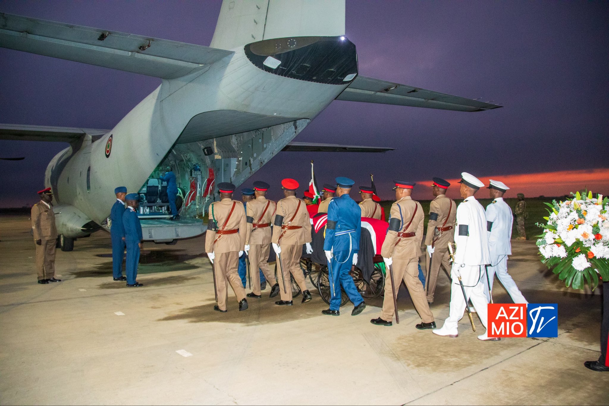 The casket, draped in the national flag, will lie in state at Mamboleo for public viewing throughout the day.