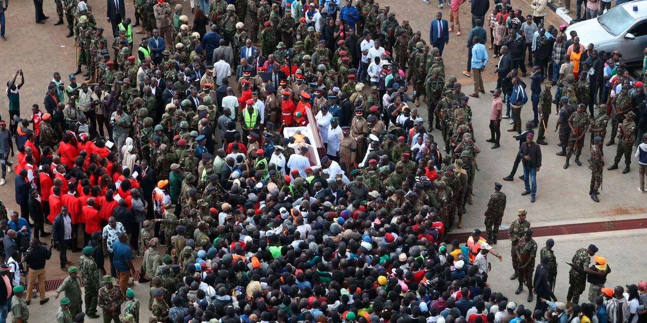 Supporters of Former Prime Minister Raila Odinga viewing his body at Kasarani Stadium in Nairobi on October 16,2025.