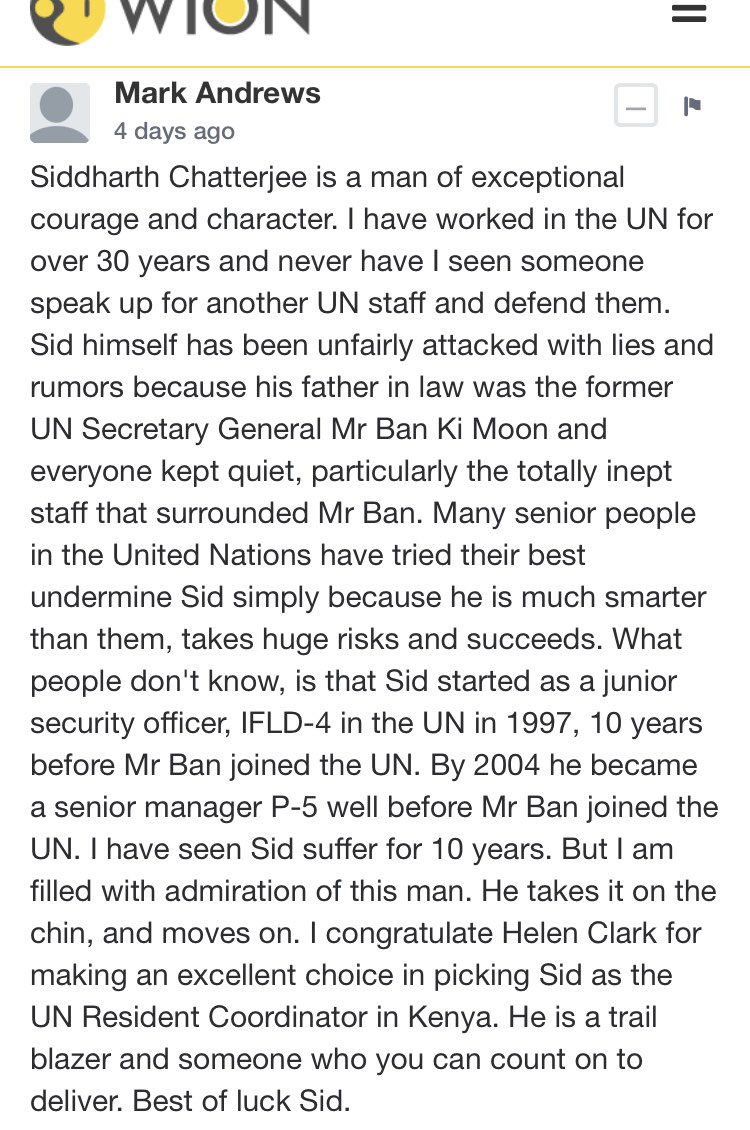 For many, the existence of Sid became a reality after the August Election, that’s when he started hitting the social media waves. We track back the talk from Matthew Russel who’s a UN HQ’s based blogger. He opened a case and pushed it to Kenya’s blogosphere on on dishonest Sid was at his work, in fact, it is through him that we came to know that the coordinator was a son-in-law to the former Sec Gen, Ban Ki-Moon, Matthew insists Sid’s appointment was not based on merits but influenced based on nepotism n his relationship with Moon, a claim that Sid himself laughs off. “I met my wife in 2004 in Sudan during the Darfur crisis and married in 2006. This is well before Mr. Ban became the United Nations Secretary-General. In fact I joined the UN in 1997(10 years before Mr Ban and rose from an IFLD 4 in Bosnia to a P-5 in Somalia by November 2004.” An article to clarify this was published by Forbes – Misread Nepotism At The U.N.: Why Siddharth Chatterjee’s Well-Earned Appointment Requires Explanation