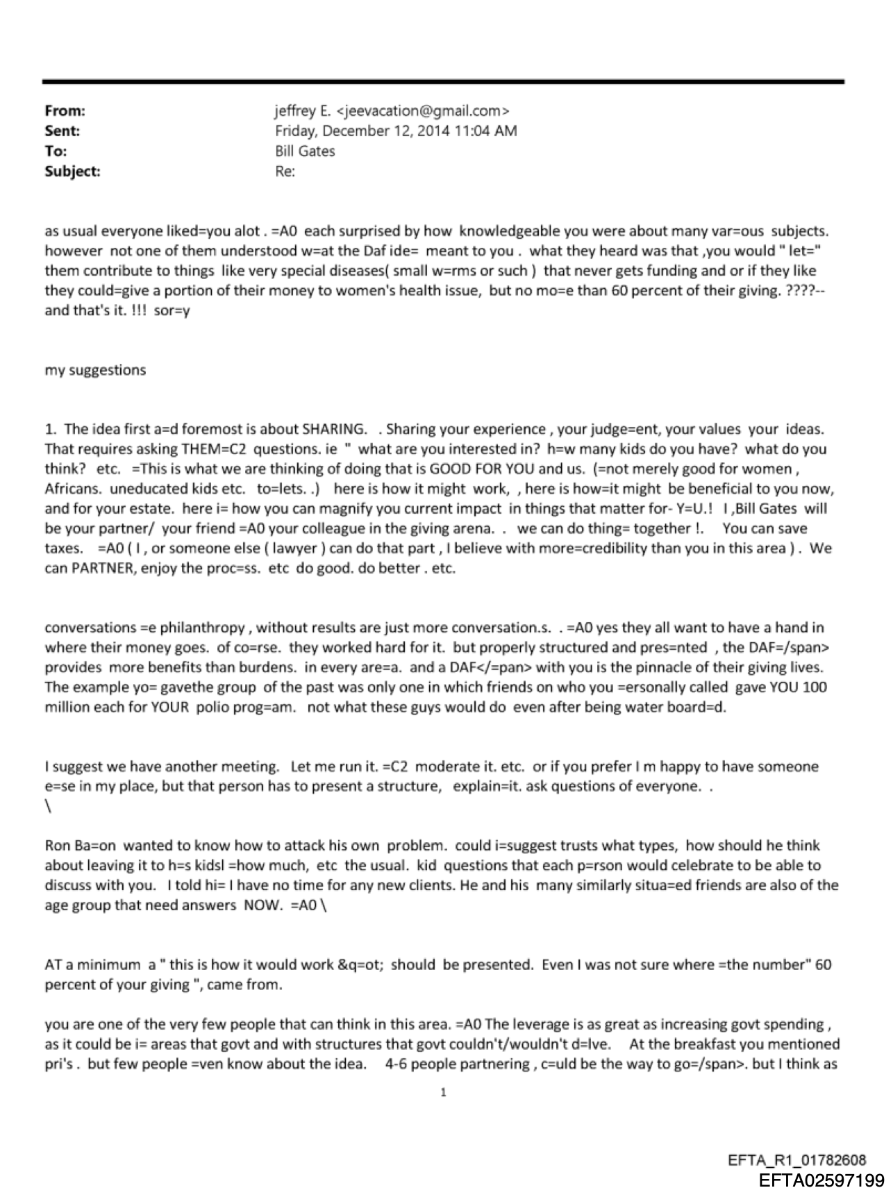 The tone was not deferential. It was advisory. The world’s most prominent philanthropist appeared to be receiving strategic feedback from a registered sex offender who had retained entrée into rooms where multibillion-dollar giving vehicles were conceived.