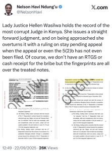 Former Law Society of Kenya President Nelson Havi has joined the charge, branding Wasilwa “the most compromised judge in Kenya’s modern history.” He alleges she has a habit of reversing her own judgments under suspicious circumstances and entertaining last-minute applications that mysteriously benefit powerful litigants. For the first time in years, the two high-profile lawyers have united behind one mission — to end what they call “a reign of impunity” within the Judiciary.